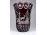 Nagy méretű, bordóra színezett, csiszolt, gazdagon díszített, kristály váza. A váza talpán egy hajszálrepedés található, lásd fotó. Oldalán szarvas, őz, őzgida, madár, fenyőfa és erdei ház csiszolt díszítés látható.