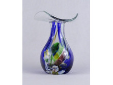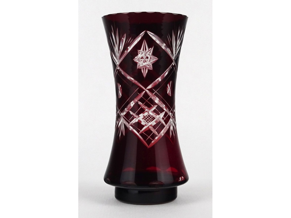Szép állapotú, gazdagon csiszolt, bordóra színezett, üveg váza, díszváza.