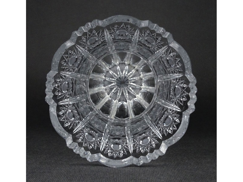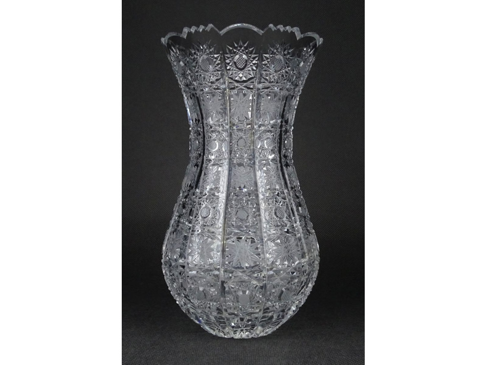 Hibátlan állapotú, csiszolatokkal nagyon gazdagon díszített vastagfalú, kristály váza.