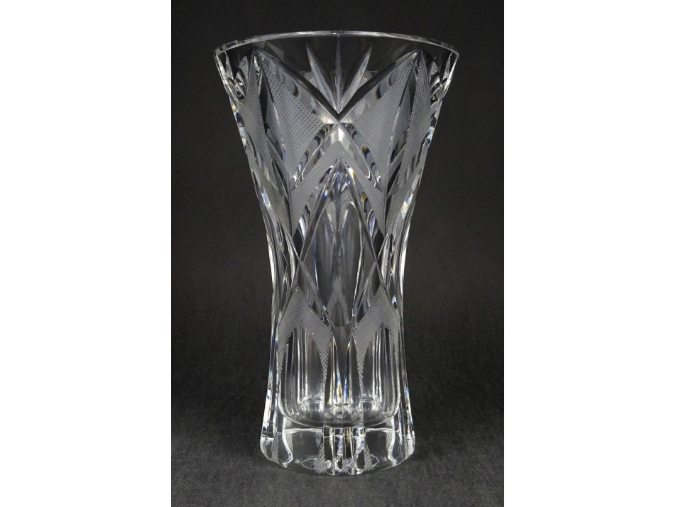 Hatalmas vastag falú csiszolt üveg kristály váza 26 cm