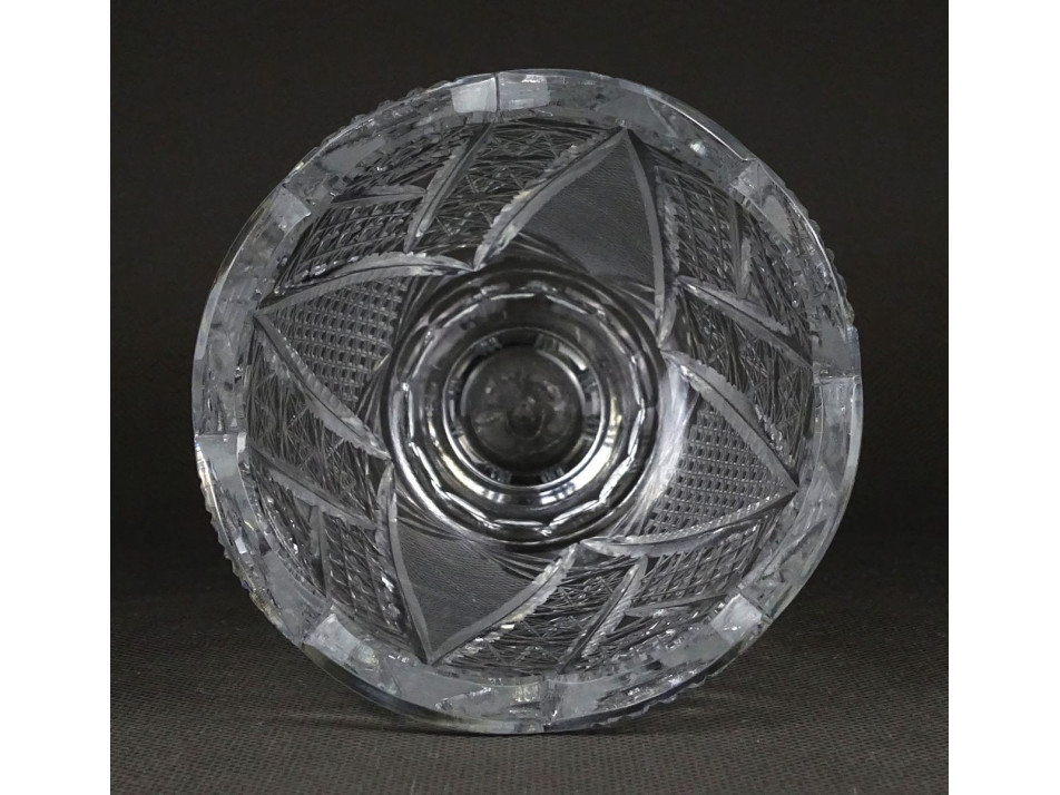 Hibátlan állapotú, csiszolatokkal gazdagon díszített, vastag falú talpas kristály váza, díszváza.