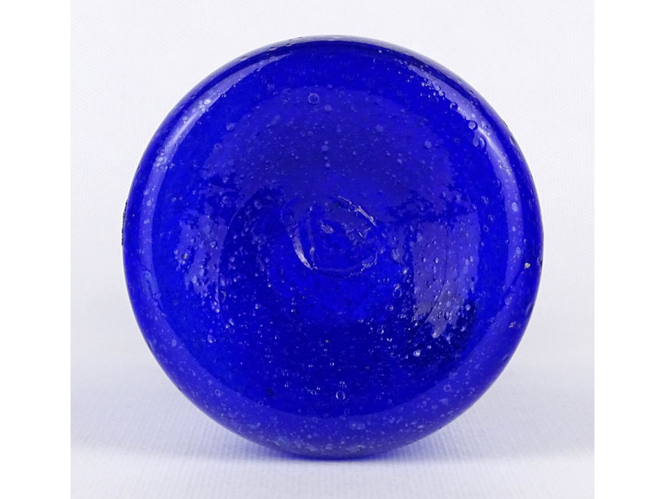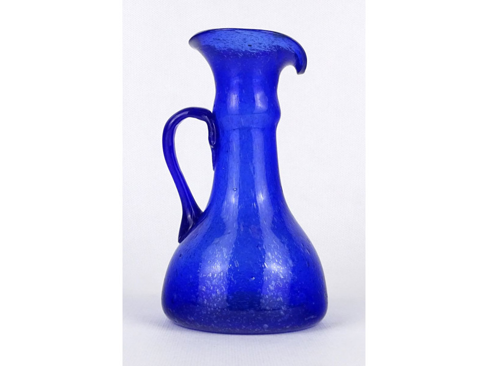 Hibátlan állapotú, kék színű, szakított, fújt üveg kiöntő alakú művészi üveg váza, díszváza a XX. század második feléből.