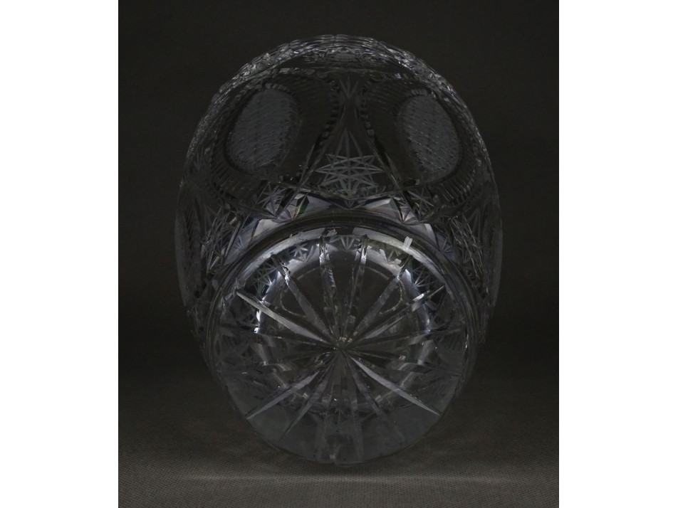 Hibátlan állapotú, vastagfalú, csiszolatokkal gazdagon díszített nagy méretű kristályváza, virágváza.