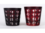 Régi csiszolt bordóra színezett überfangos üveg pohár pár