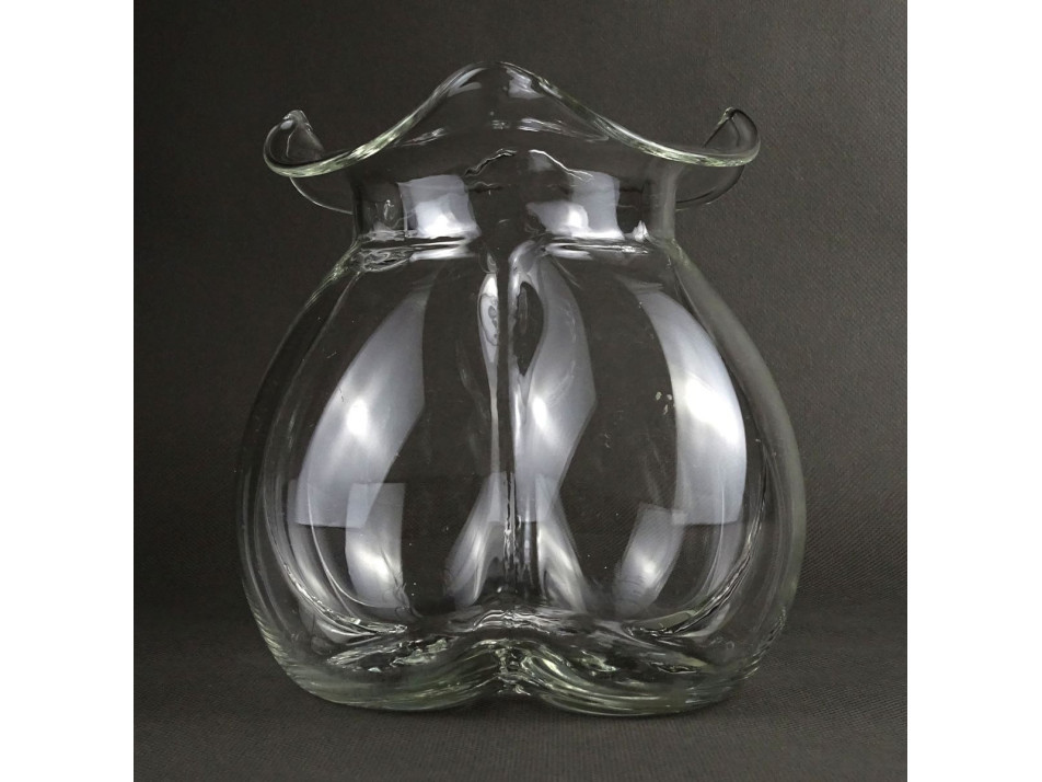 Hibátlan állapotú gerezdes fújt üveg váza, virágváza. Szája fodros, teste gerezdes.