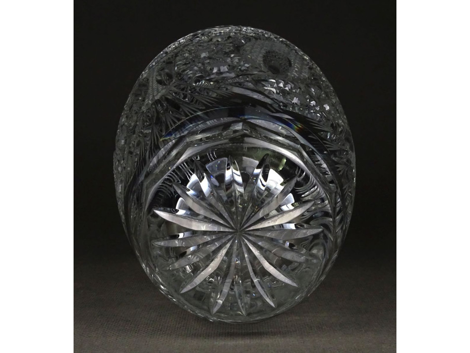 Hibátlan állapotú, csiszolatokkal díszített vastagfalú kristály váza, virágváza, díszváza.