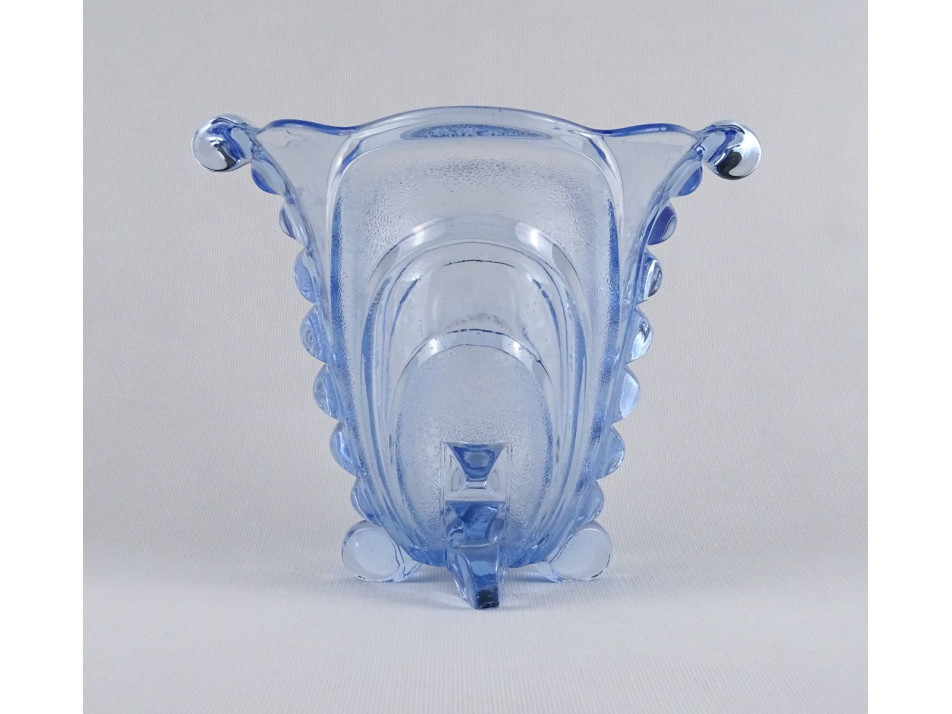 Hibátlan állapotú halványkék üveg asztali dísztárgy, váza, asztalközép.