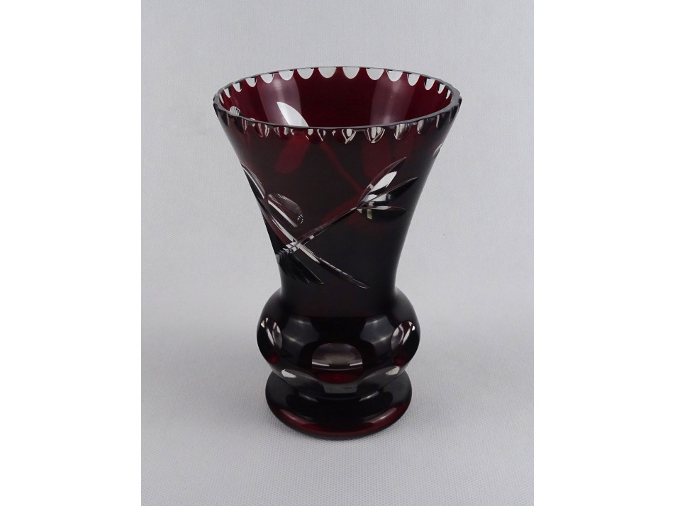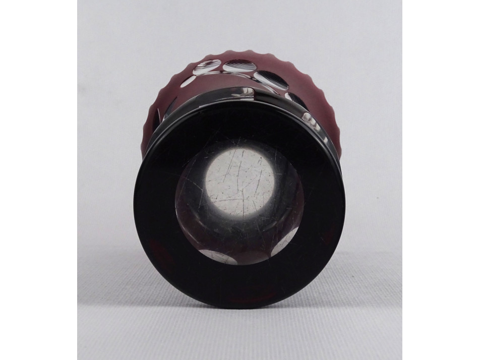 Régi bordó csiszolt üveg váza 16 cm