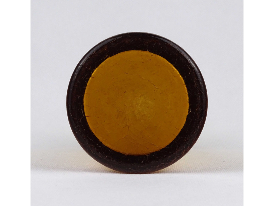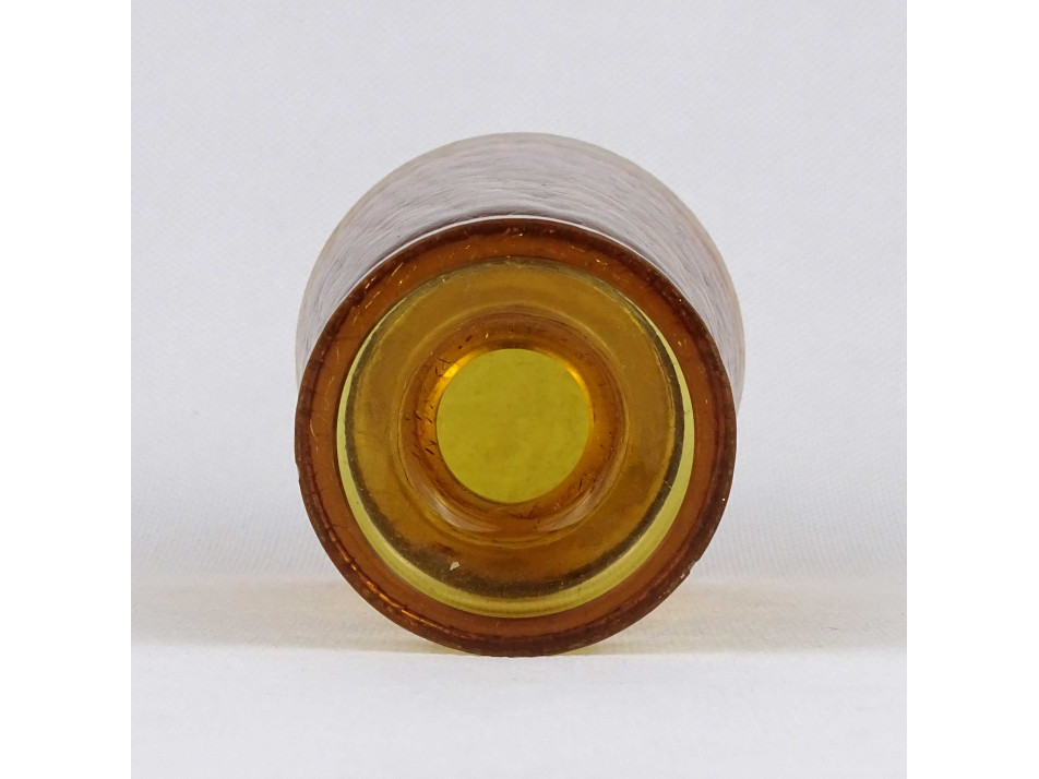 Borostyán sárga színű vastag falú repesztett üveg váza 13.7 cm