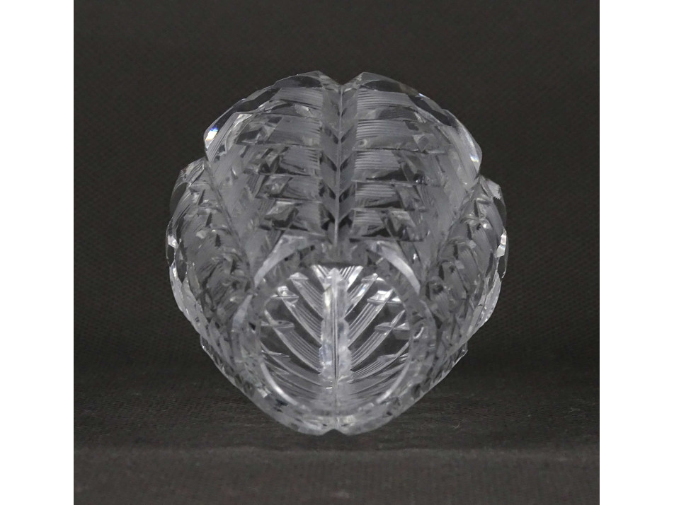Régi kisméretű csiszolt kristály váza 10.7 cm