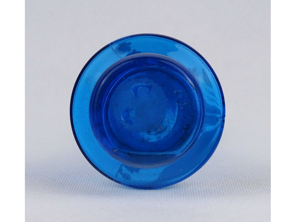 Antik kisméretű, kék színű, gyöngyvirágos fújt üveg ibolyaváza 14.2 cm