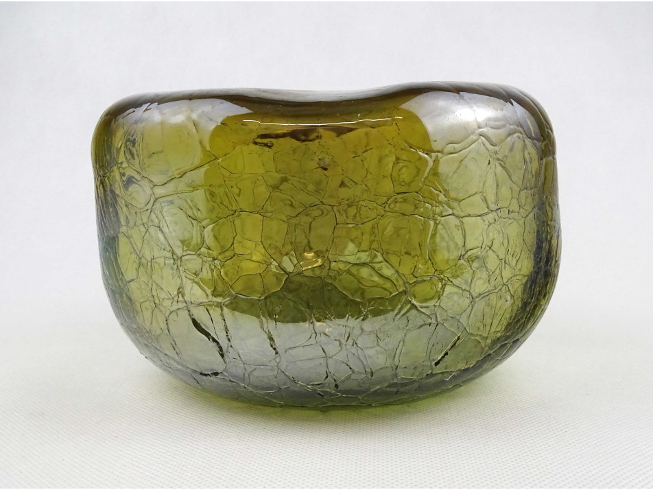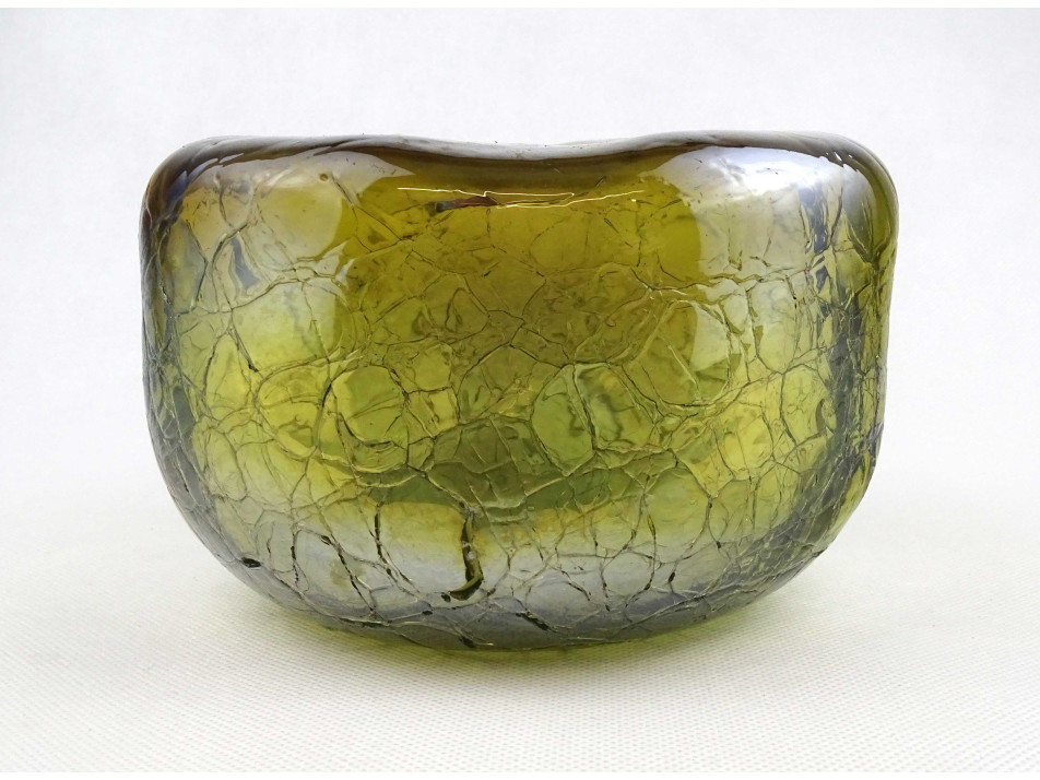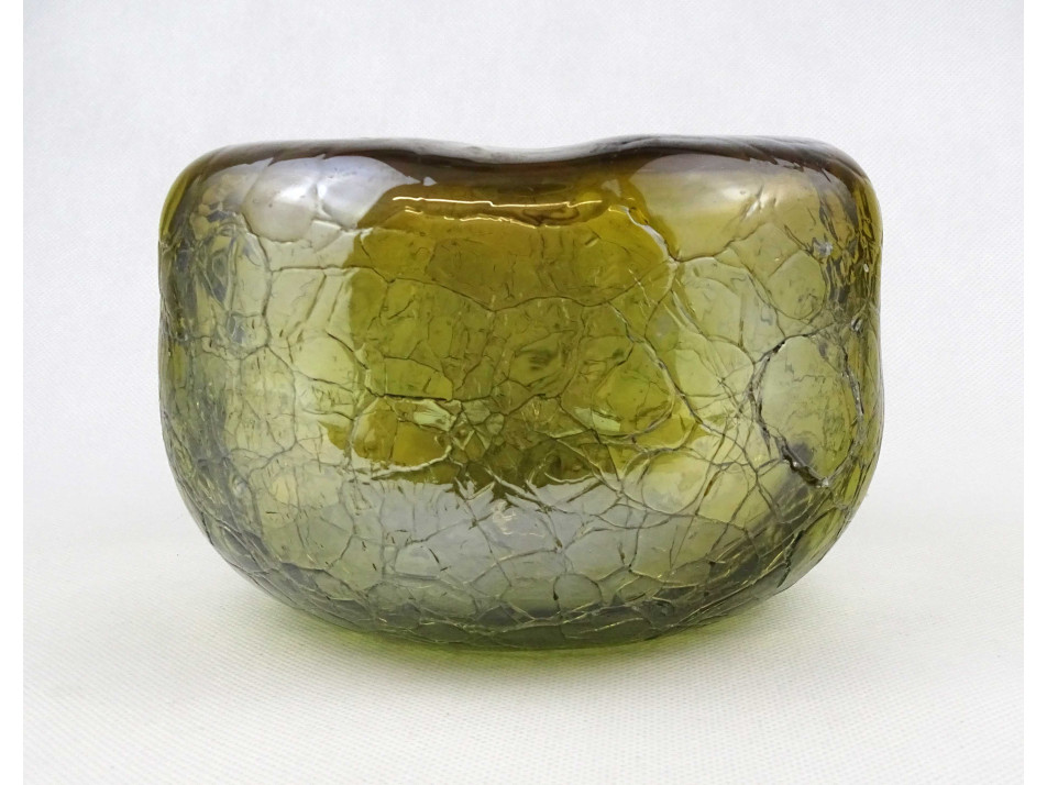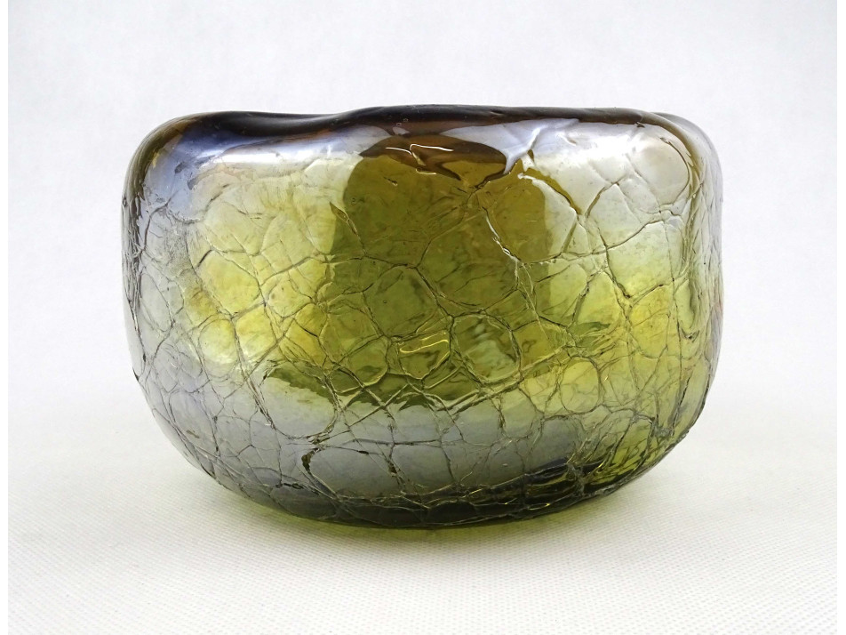 Gyönyörű irizáló rétegelt kraklé crackle üveg váza 11 x 17 cm