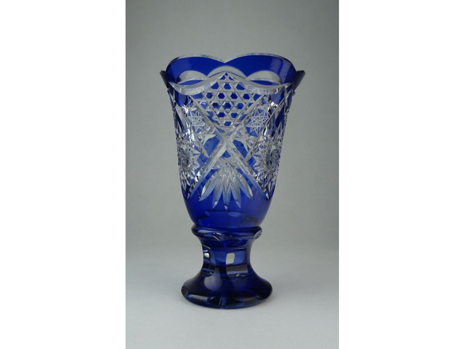 Kék csiszolt üveg kristály váza 21 cm