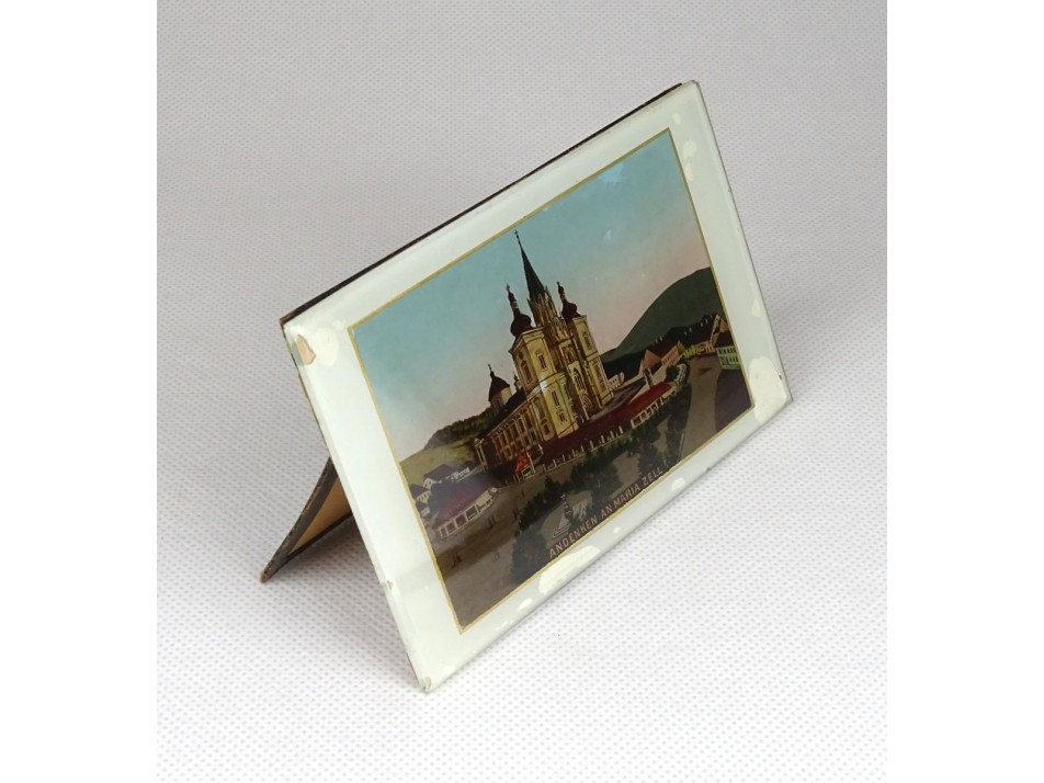 Antik Mariazell emléktárgy üveg kép 7 x 11 cm
