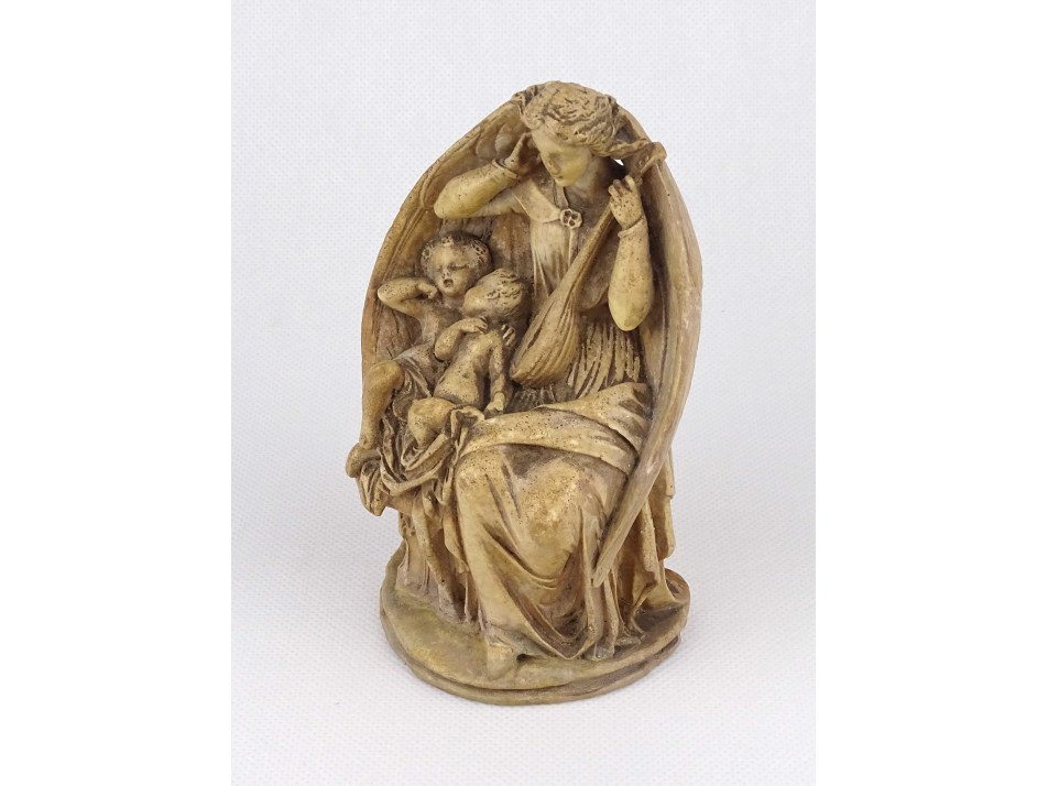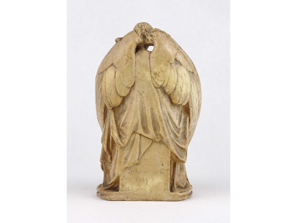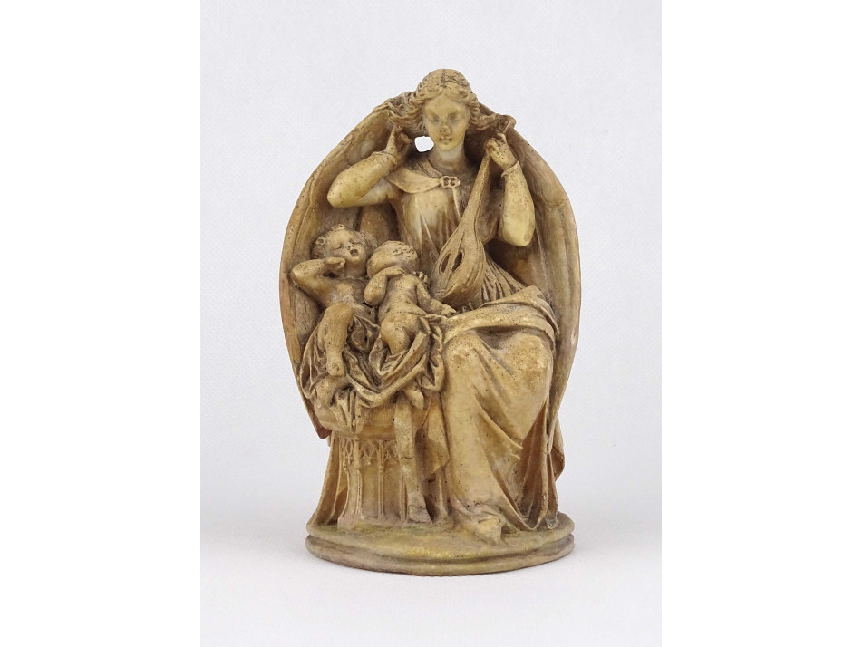 Gyönyörű jelzett antik faragott tajték (meerschaum) szobor. Angyal putókkal, gótikus talapzaton. Gyönyörű patinás vallási kegytárgy. A talapzata és a bal szárnya restaurátor által szakszerűen javított.