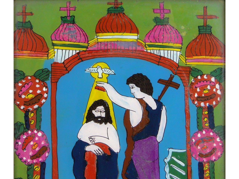 Antik üveg ikon : Keresztelő Szent János