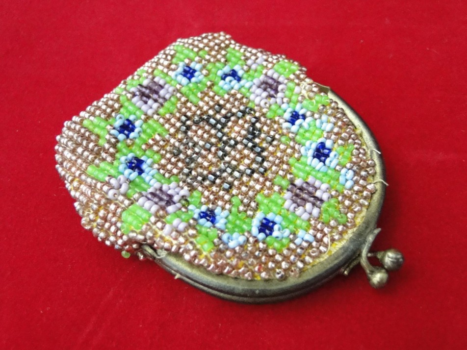 Kisméretű antik csatos táska, ékszer, máriafüzér tartó kistáska.