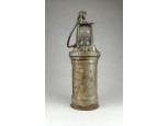 Nagyon régi, szép állapotú, réz testű színházi távcső, látcső, kukker, csiszolt kagyló, gyöngyház berakással. Az összekötő, rögzítő csavarja hiányzik, eredeti tokja megvan.