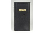 Antik faragott fa keretben, üveglap mögött található fekete-fehér katona fénykép, fotográfia.