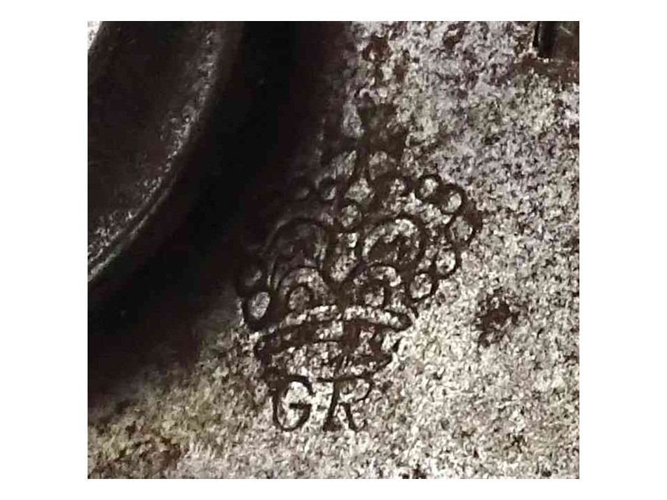 A szerkezet takarólemezén koronás jelzés melette felirat:
