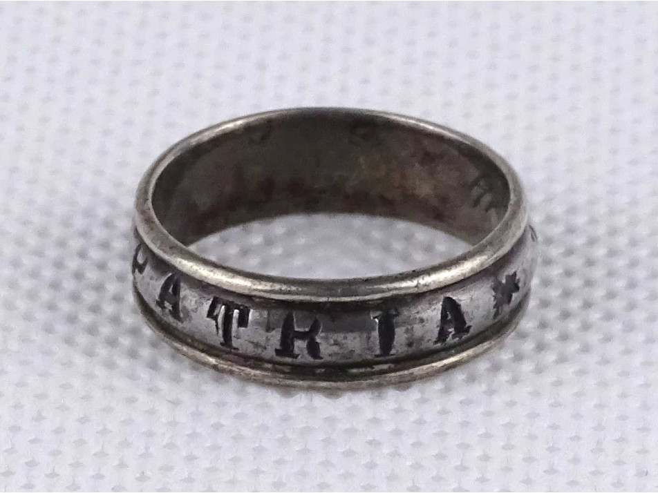 Antik PRO PATRIA 1914 feliratú acél gyűrű