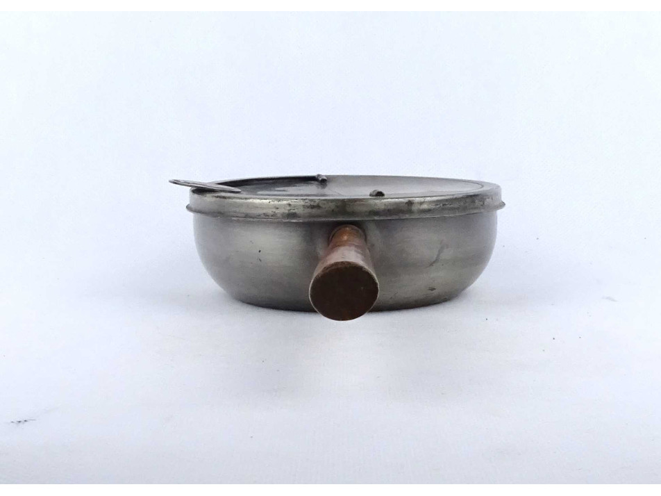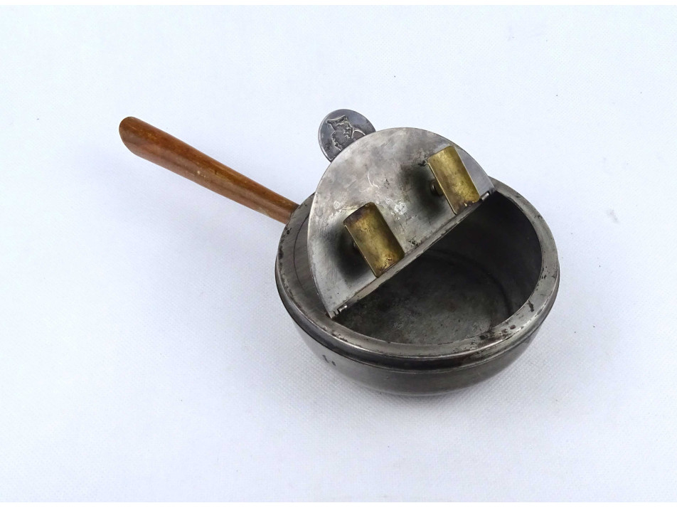 Régi jelzett, ezüstözött, nyitható fedeles, fanyelű hamutartó, kétállásos szivar hamutál.