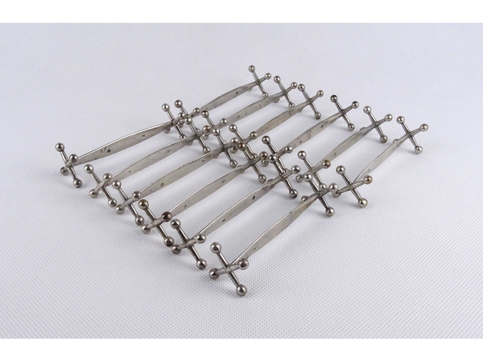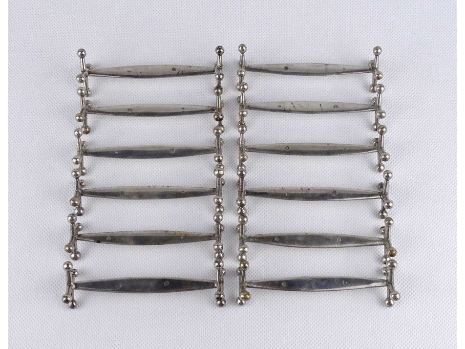 Antik 800-as ezüst késbak, evőeszköztartó készlet 12 darab 366 g