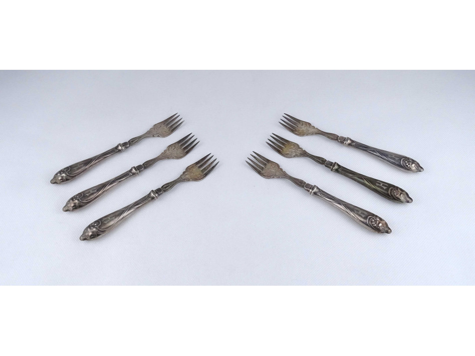 Antik ezüstözött szecessziós WMF evőeszköz készlet halas villa 6 darab