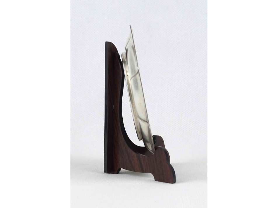 Régi, szép állapotú, kis méretű nyolcszög, alakú 800-as ezüst tálka, kis tál, hamutál. Rajta felülről beütött 1941-ig használt Cseszlovák kettőskeresztes 5-ös, 800 ezredrész finomságú fémjel, mellette 800 jelzés és "AN" mesterjel.