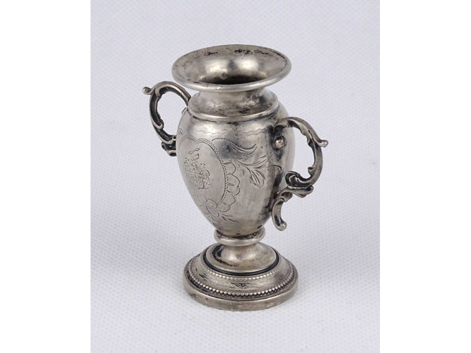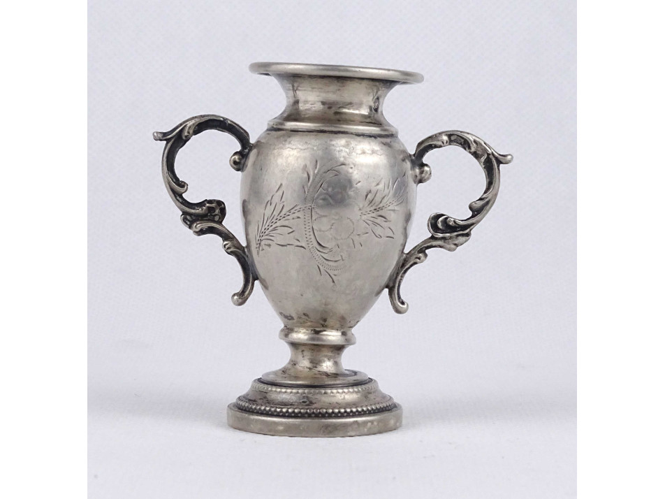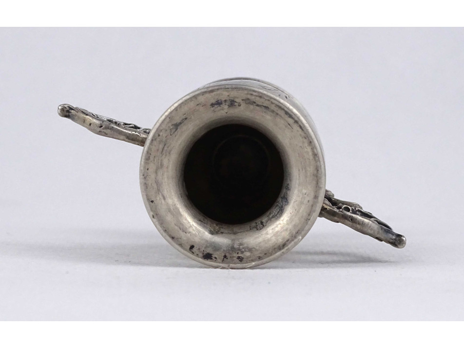 Antik, jelzett, kisméretű, vésett ezüst váza 41 g