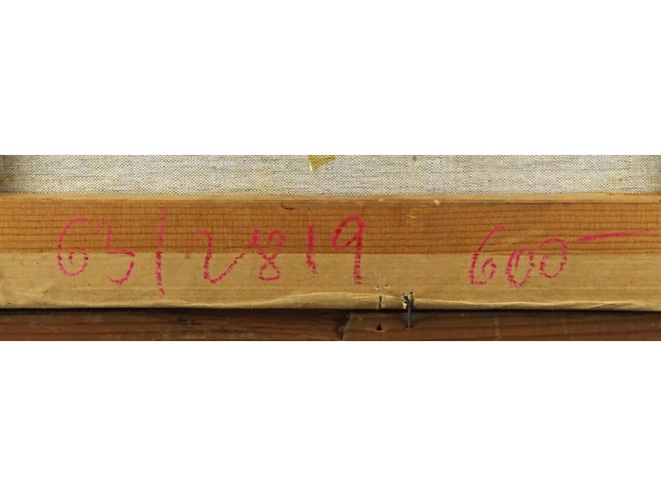 Antik, jelzetlen olaj vászon festmény, szép állapotú arany színű keretben, felújítás-mentes állapotban. A festményen több apró sérülés látható, a festék lepattogzott a vászonról.