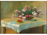 Monokróm papír tempera festmény pár, üveglap mögött, paszpartuban, egységesen keretezve.