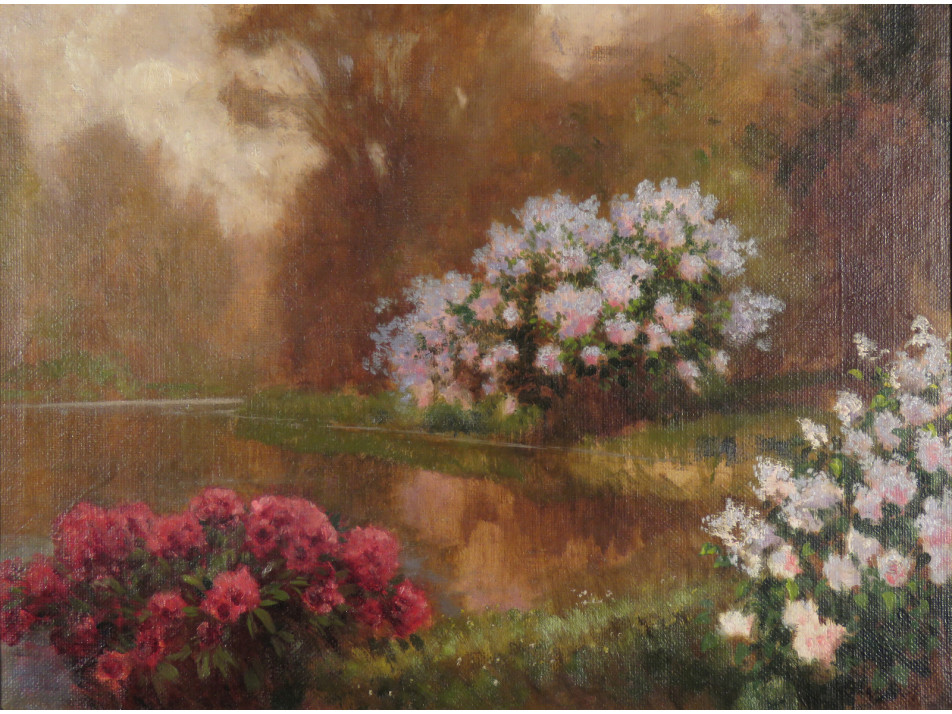 Virágzó bokrok a tóparton