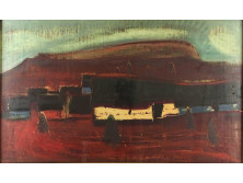 Szép állapotú olaj vászon festmény kartonra kasírozva, keret nélkül.