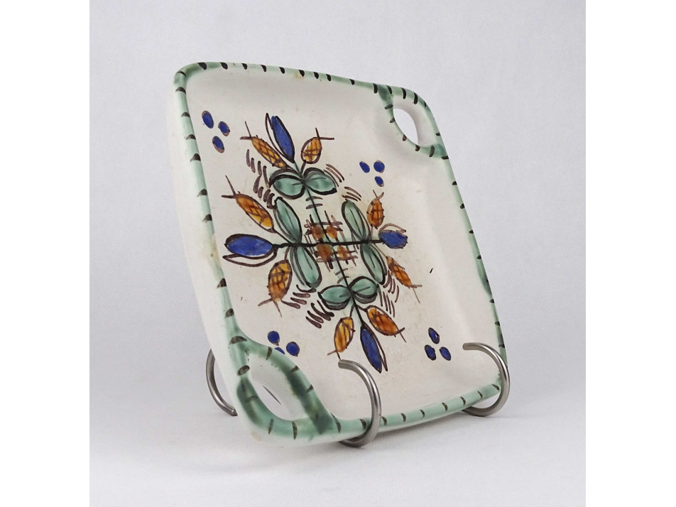 Régi, szép állapotú, kisméretű, virágos, mázas Gorka kerámia asztalközép, kínáló tál. Belső peremén egy kisméretű lepattanás látható.
