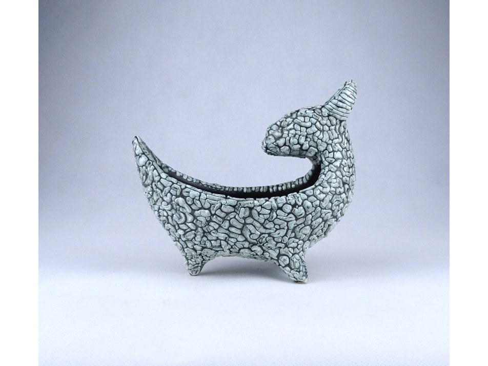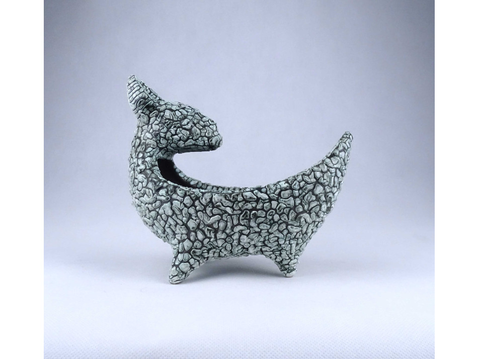 Hibátlan állapotú, zöld mázas, jelzett Gorka Géza kerámia kínáló tál.
