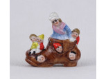 Antik előkelő hölgyet formáló, figurális majolika fedeles bonbonier 11.5 cm