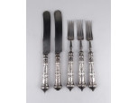 Antik jelzett ezüstnyelű kés és villa készlet 5 db