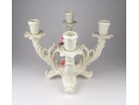 Régi hibátlan állapotú kis méretű német porcelán gyertya tartó, rajta középen plasztikus rózsa díszítéssel.