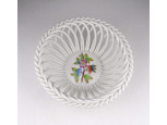 Régi, kisméretű, ovális alakú, virág mintás Herendi porcelán fonott kosárka.