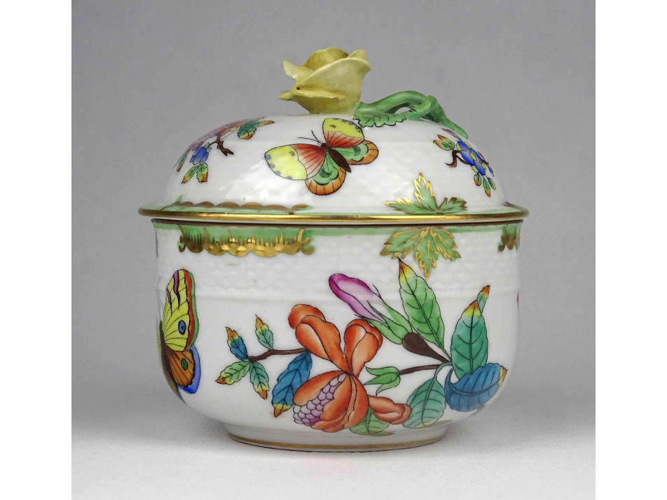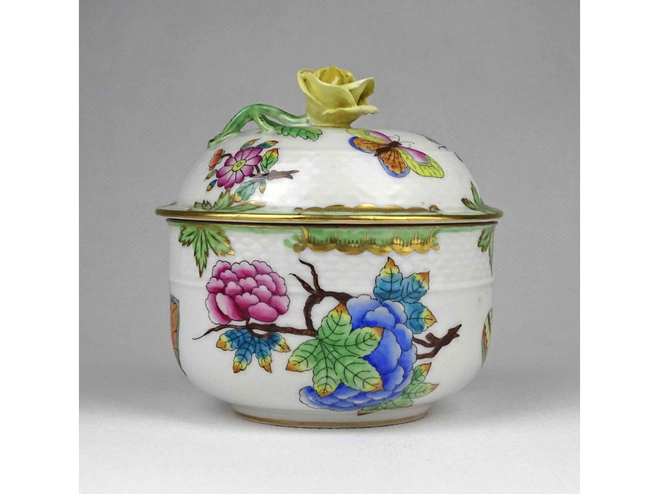 Antik Viktória mintás Herendi porcelán bonbonier 9.2 cm