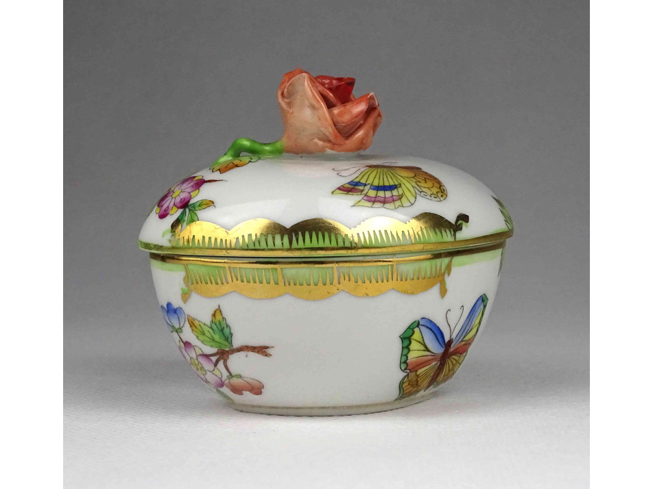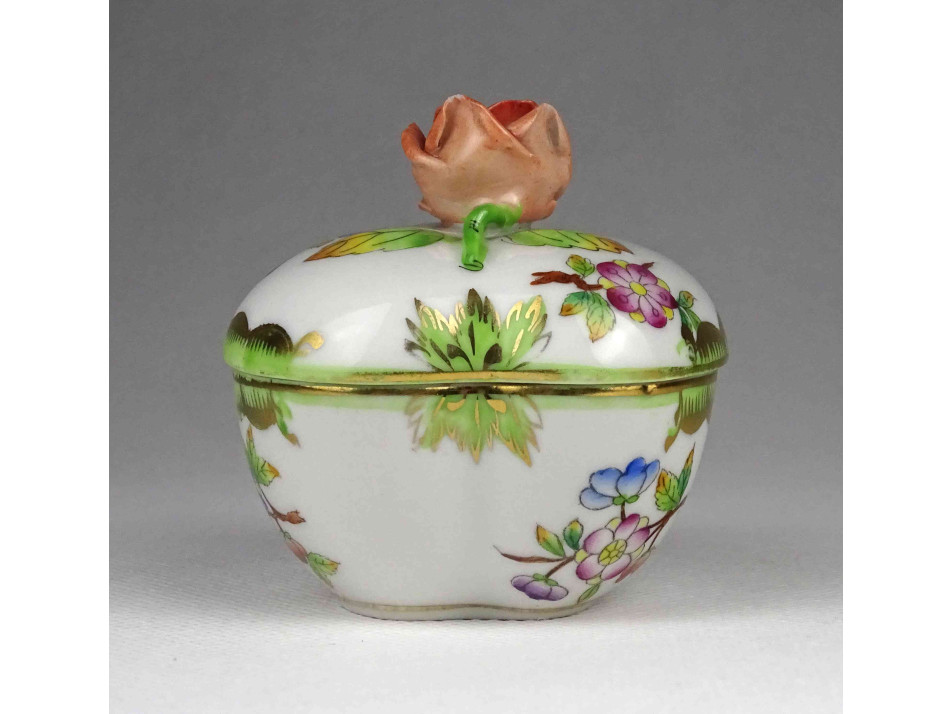 Hibátlan állapotú, Viktória mintás Herendi porcelán bonbonier, tetején rózsa fogantyúval.