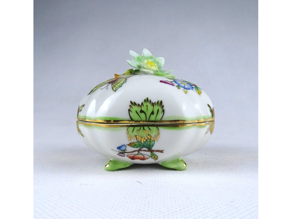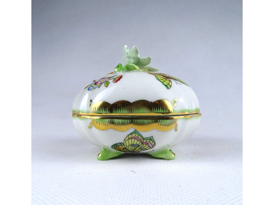 Nyolcszög alakú Viktória mintás Herendi porcelán lábas bonbonier
