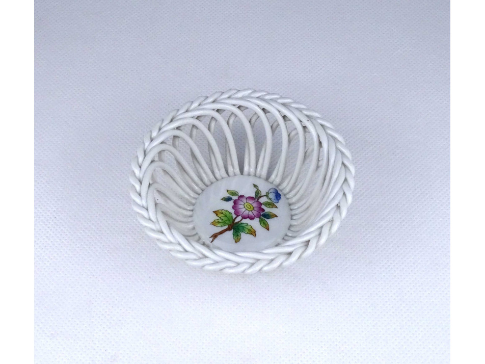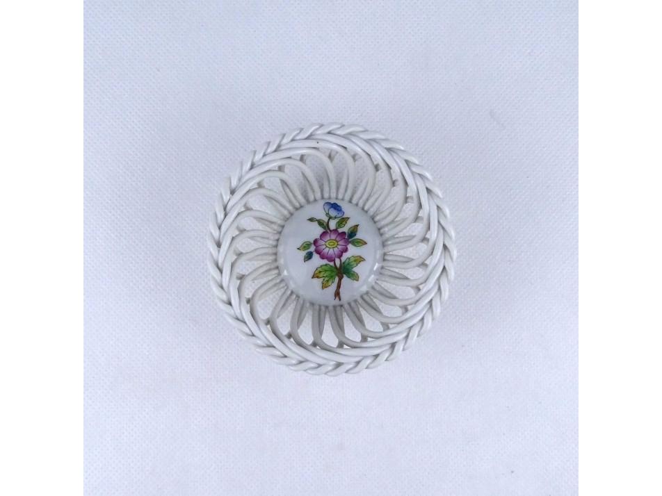 Viktória mintás virágos Herendi porcelán fonott kosár 9.5 cm