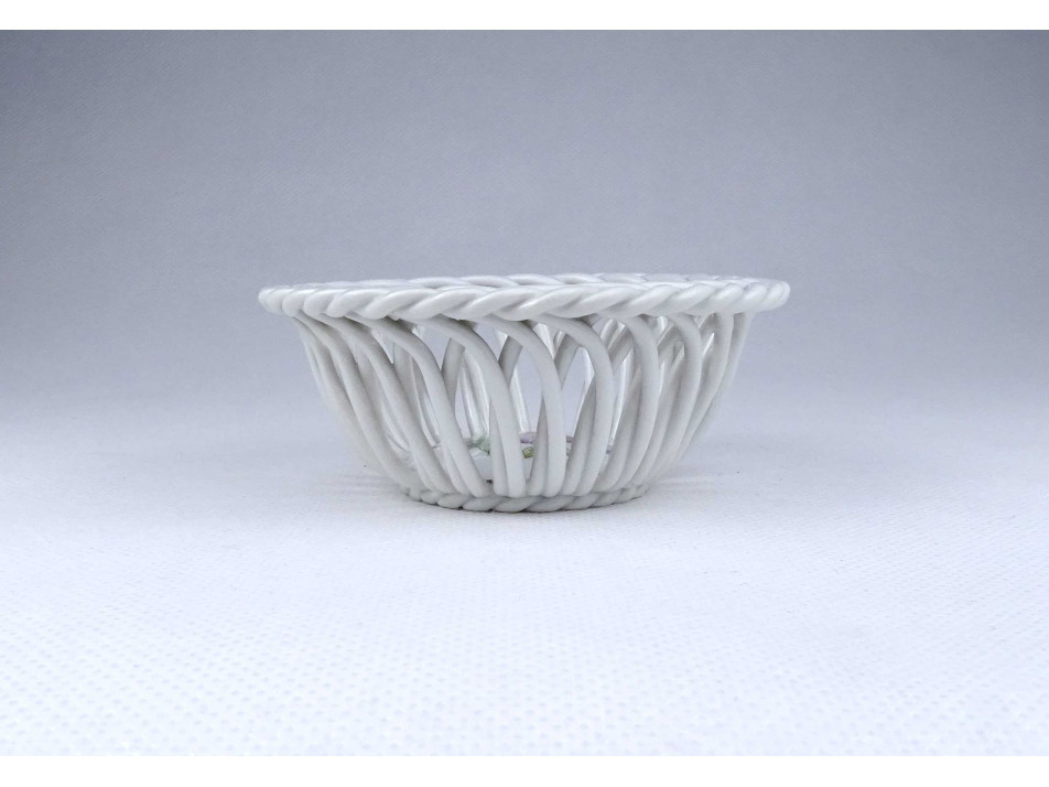 Hibátlan állapotú, gyönyörű, fonatos, áttört díszes I. osztályú Herendi porcelán, kosárka.