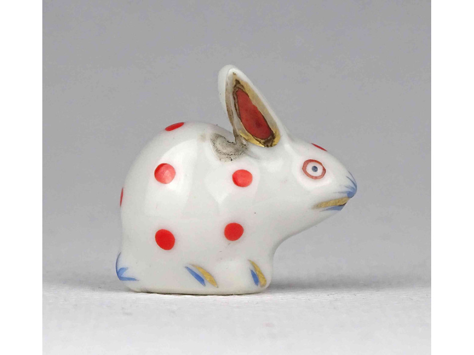 Antik ó-herendi porcelán kisméretű piros pettyes nyúl 2.4 cm