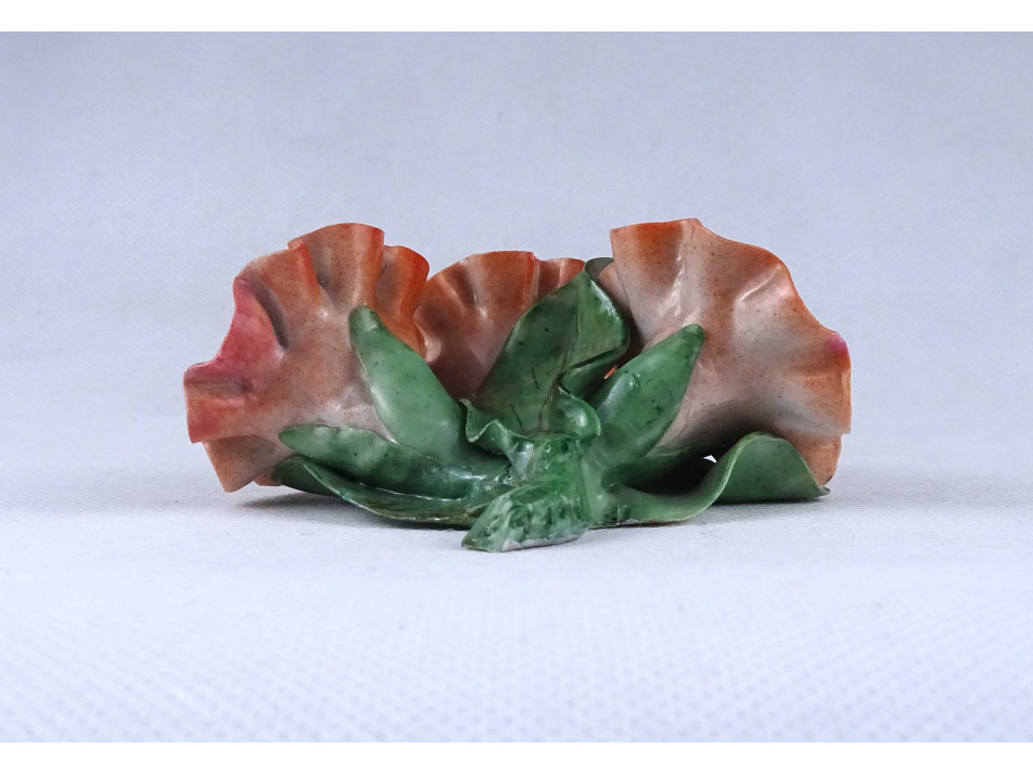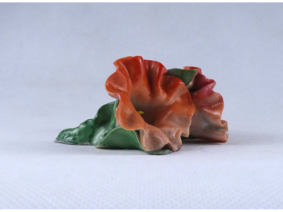 Régi jelzett Herendi porcelán hármas piros virág. Az egyik levél restaurátor által szakszerűen javított.
