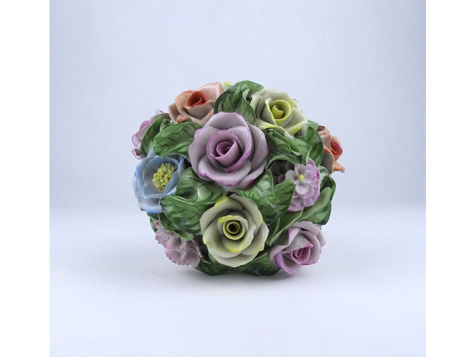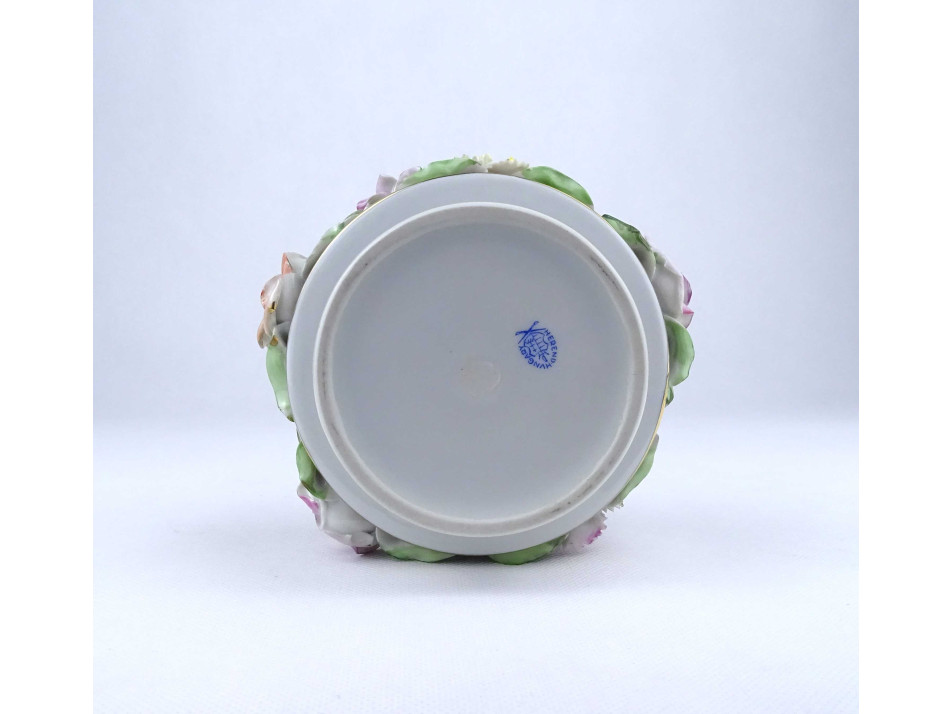 Régi, szép állapotú Herendi porcelán virágcsokor. Sűrű plasztikus levelek között 12 darab virág található.