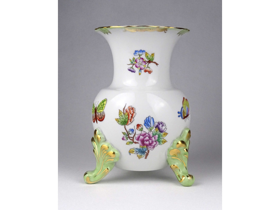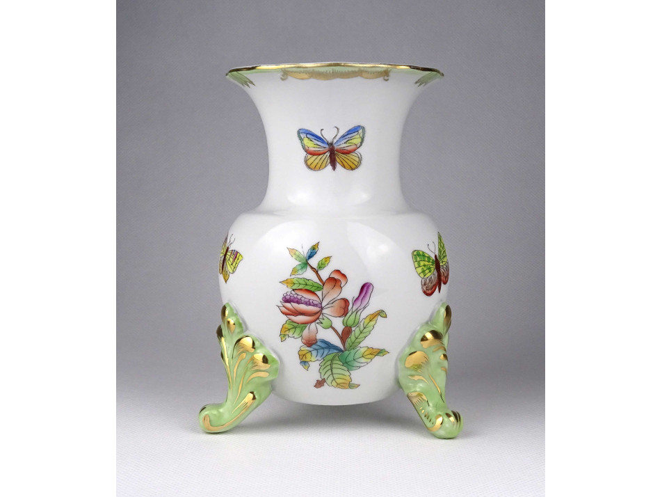 Háromlábú pillangó mintás Herendi porcelán váza 16 cm