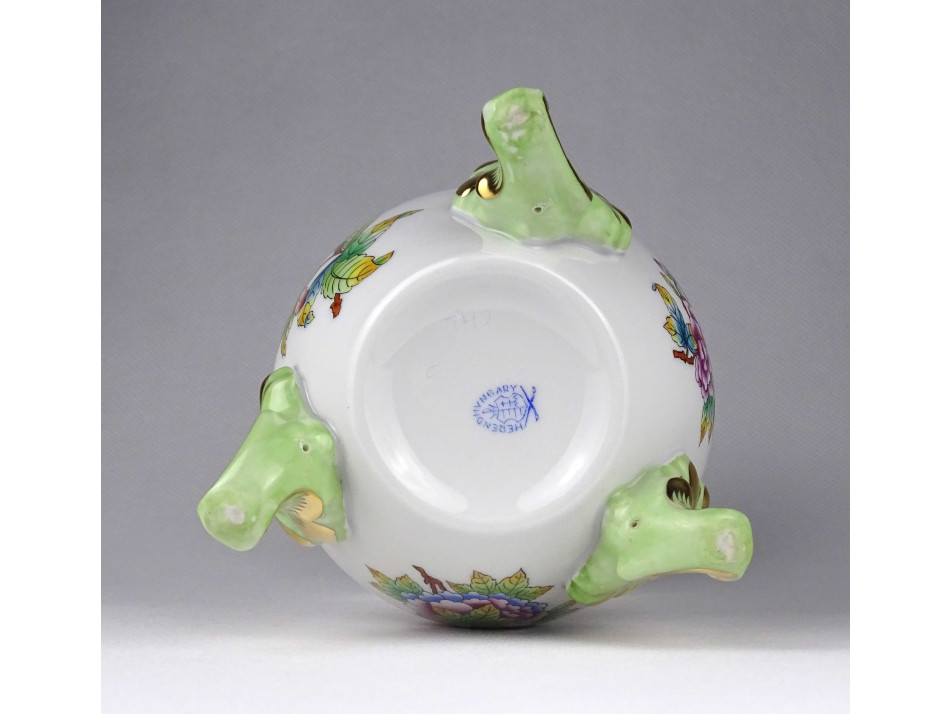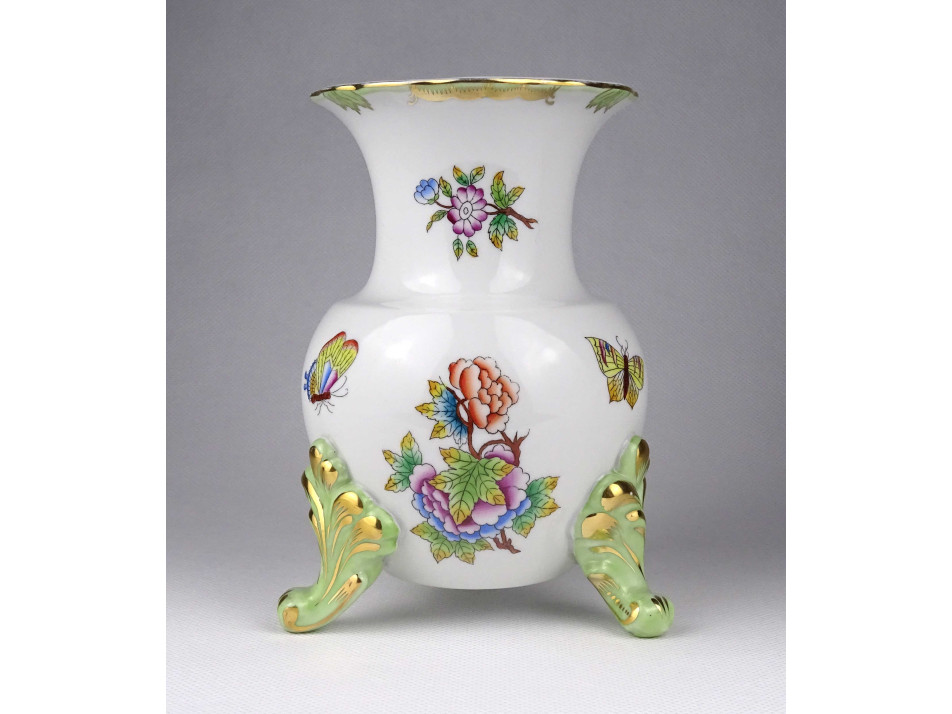 Hibátlan állapotú, jelzett, aranyozott, pillangós, három lábon álló Herendi váza. A váza nyaka és felső pereme restaurátor által szakszerűen javított.